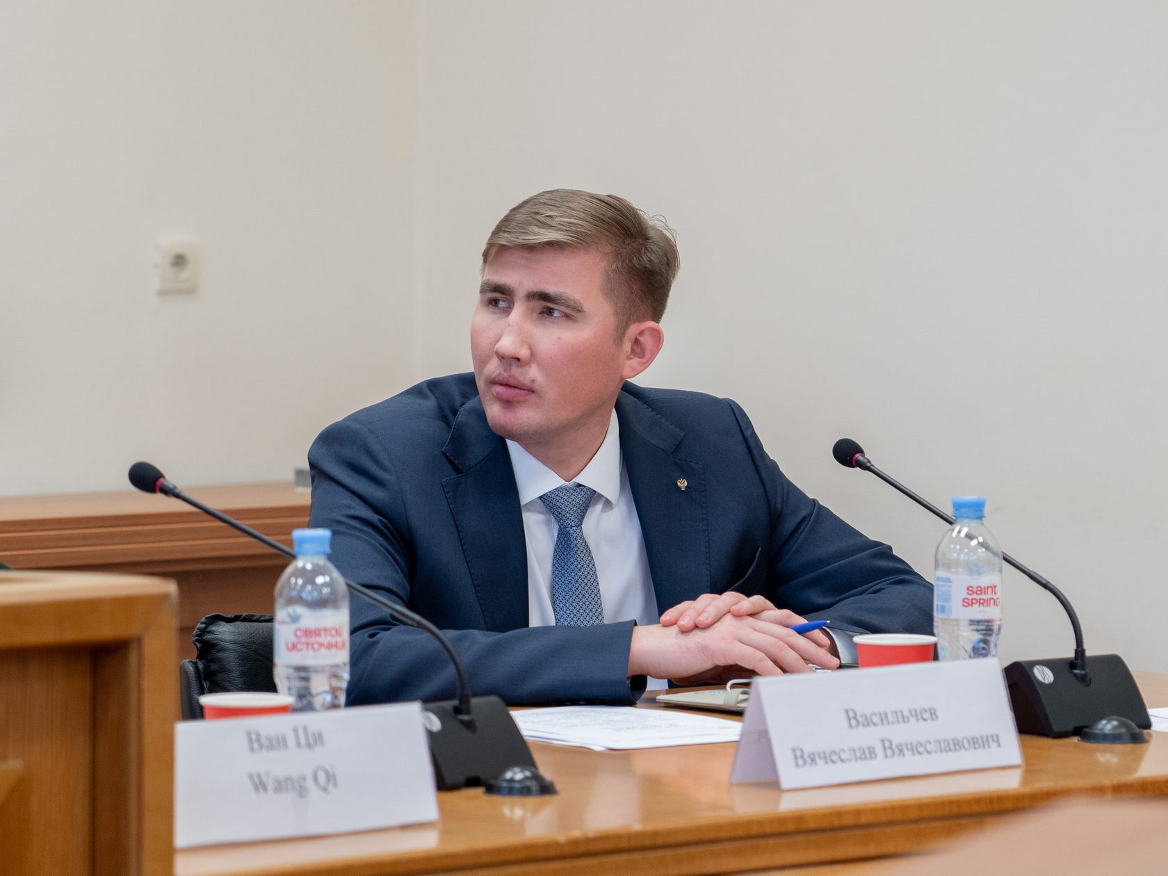 С приветственным словом выступил и.о. директора ИМТК Вячеслав Васильчев, отметив значительный вклад Университета Цинхуа в развитие двусторонних отношений и выразил личную благодарность г-же Ван Ци за многолетнюю дружбу и поддержку общих проектов.